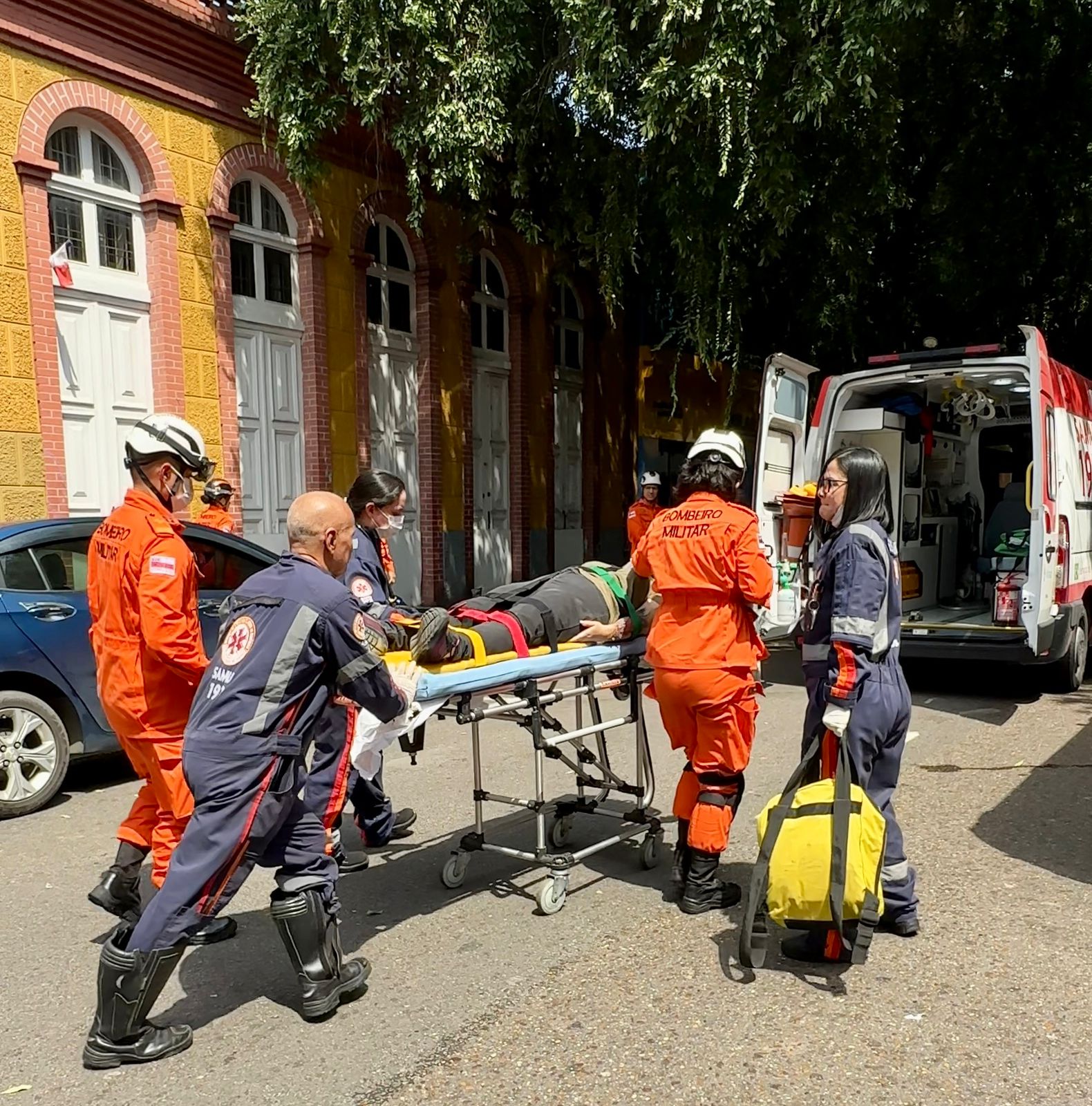 A simulação aplicou técnicas de salvamento, isolamento, evacuação, contenção e descontaminação nos cenários.